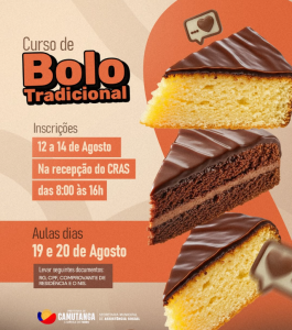 A Prefeitura de Camutanga, por meio da Secretaria Municipal de Assistência Social, convida você para participar do Curso de Bolo Tradicional!