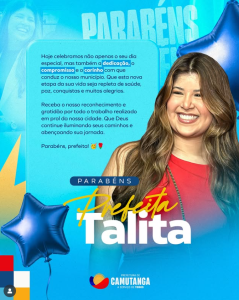 Hoje celebramos não apenas o seu dia especial, mas também a dedicação, o compromisso e o carinho com que conduz o nosso município. Que esta nova etapa da sua vida seja repleta de saúde, paz, conquistas e muitas alegrias.